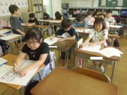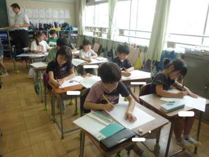 題材は各自が調べた「生き物」をクイズにしていました。どの子もメモをもとに、一生懸命にまとめていました。