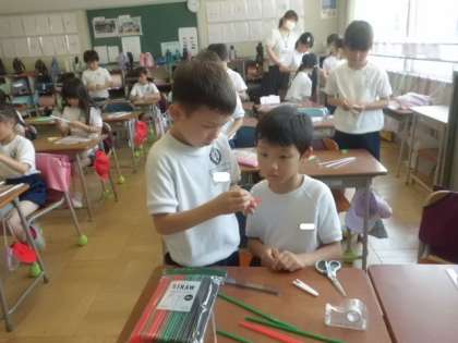 2年1組も、「パタパタストロー」の図工でした。