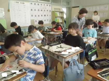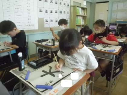 3年2組は「毛筆」の授業でした。今回は「大」の字を書きました。