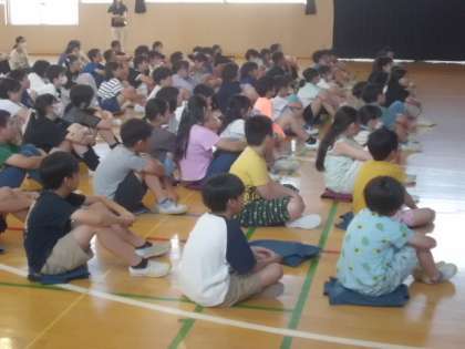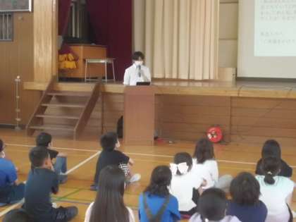 体育館では5年生が、弁護士さんによる「いじめ防止」の授業を受けていました。実際の事例をもとにしたお話で、中身の濃い内容でした。