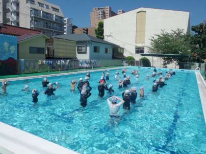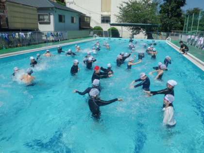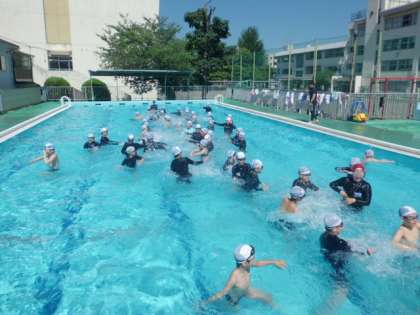 気温も上がり、気持ち良いプール日和でした。この後、2年生もプールに入りました。