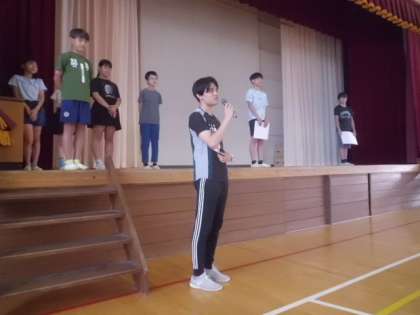 「先生○×クイズ」でした。数人の先生に関する問題が出され、○×で答えます。大いに盛り上がりました。