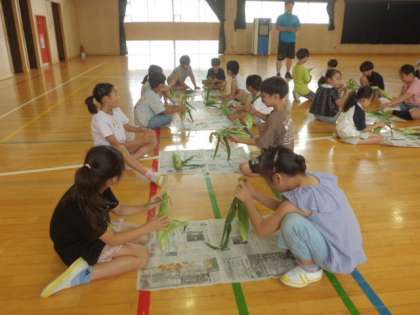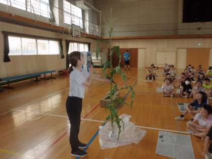 皮をむく前に、栄養士の先生から、トウモロコシについて、いろいろなお話をしてもらい、食育の学習もしました。