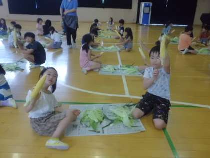 トウモロコシの皮むき体験(3年生)6