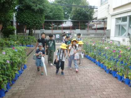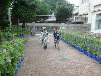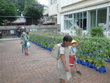 7月16日(火)の登校風景です。第一小学校の1学期は22日(月)までです。18日(木)から20日(土)まで6年生が日光移動教室に行ってきます。
