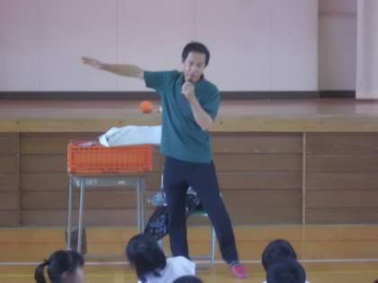 16日(火)、毎年3年生が社会科見学でお邪魔させていただいている「中西ファーム」の社長さんが農家の仕事のお話をしに来てくださいました。