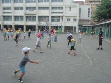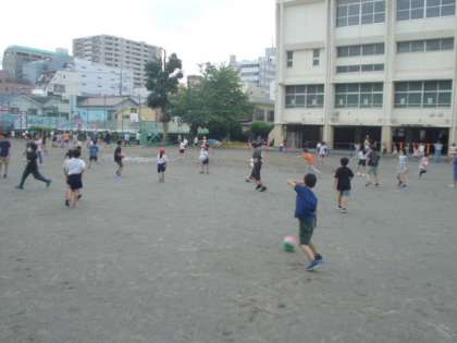 昼休みの様子です。2年生が先生と、ドッジボールをしていました。