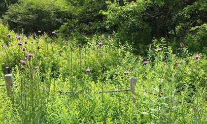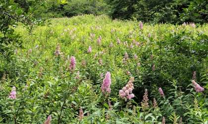 展望台付近では、シモツケとアザミが群生していて、とてもきれいでした。