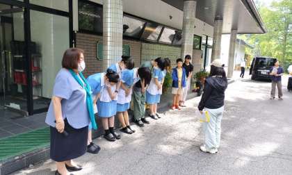 三日間お世話になった宿ともお別れです。閉校式の様子です。ありがとうございました。