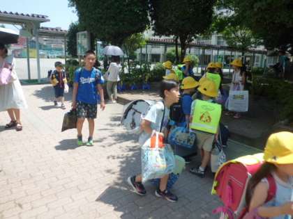 今日は暑かったですね。日傘をさして帰る子もいました。