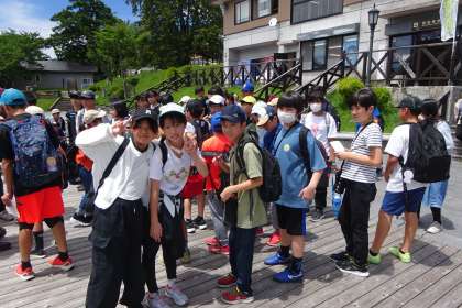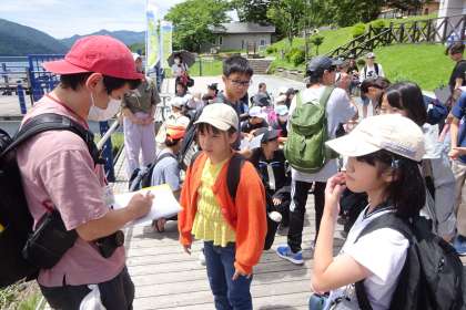 お昼を済ませ、遊覧船乗り場で人数チェックです。