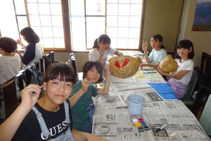 自分のイメージ合う形の瓢箪を選び、下書きをもとに、チョークで輪郭をとっていきます。