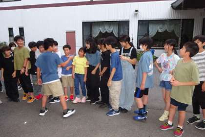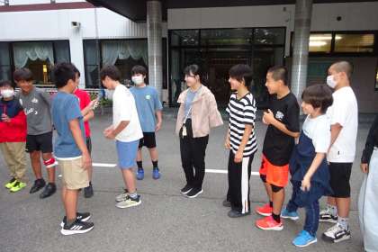 続いては、ジェスチャーで伝えましょうゲームです。ジェスチャーで伝え合い、全員が誕生日順に並びます。
