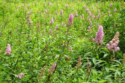 チェックポイントの赤沼まではもう一息です。ホザキシモツケがきれいに咲いていました。