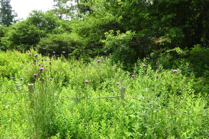 ホザキシモツケとアザミが群生しています。とてもきれいでした。