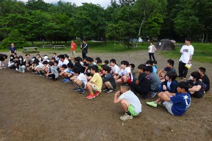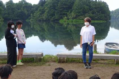3日目の朝です。この日も湯の湖畔で、朝の会と体操をしました。