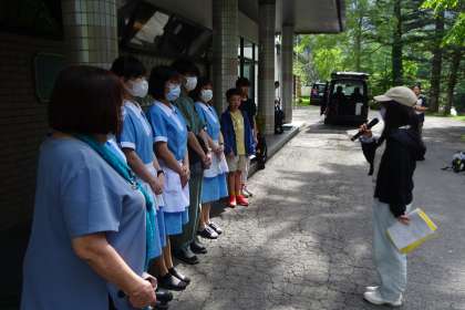 ホテルともお別れです。閉校式が始まりました。お礼の言葉を代表の子が話しました。