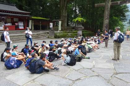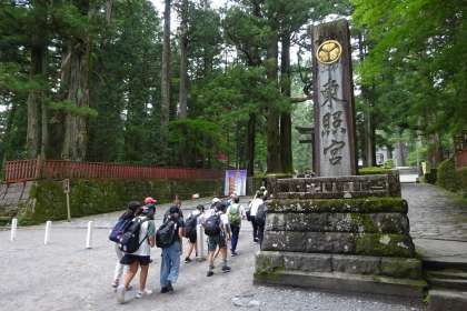 東照宮入り口に着きました。さっそく五重塔が出迎えてくれました。ここからは班行動で見学となります。