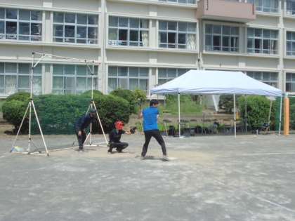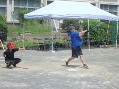 大和田小学校のピッチャーは、ソフトボール経験のある女性の先生でした。速い球がズバッと投げこまれてきます。