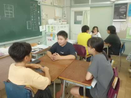 6年2組です。夏休みの報告会をしていました。