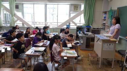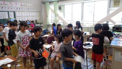 3年1組にお邪魔しました。道徳の授業でした。ちょうど授業時間が終わるところでした。子どもたちが道徳ノートを先生に提出しています。