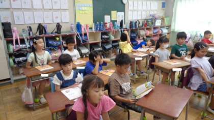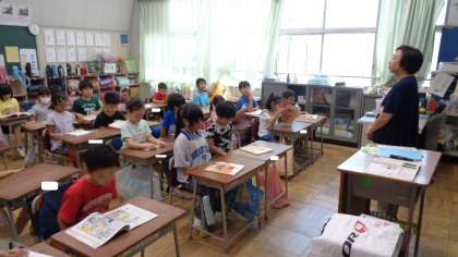 2年1組です。道徳の授業が始まるところでした。