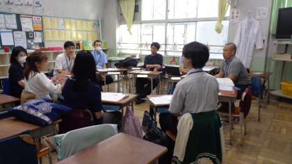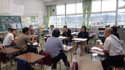 3校の先生方が話し合っています。