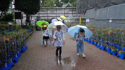 今日は一日雨降りでした。それでも朝は、傘をさしている子、そうでない子といました。