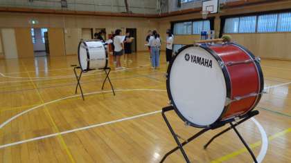 一小には応援団用の赤白大太鼓がありました。初めて見ました。