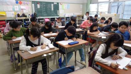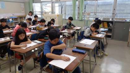 4年2組です。プリント学習をしていました。