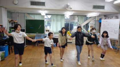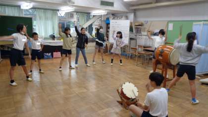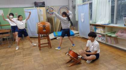 運動会のソーラン節で披露する踊りを、実行委員の子が自主練習していました。お囃子が聞こえてきましたよ。
