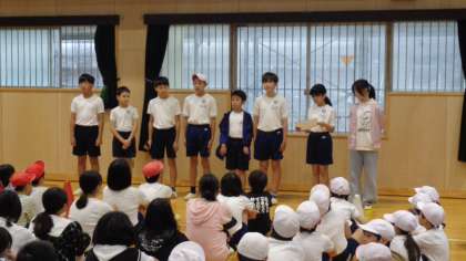 10日(木)は、音楽集会でした。新しい集会委員会の子が、司会を頑張ってくれました。