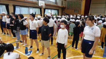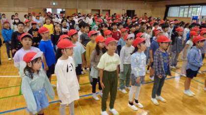 運動会を前に、赤白に分かれて、運動会の歌を歌いました。