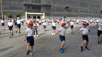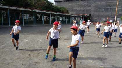 校庭で、3・4年生がダンスの練習をしていました。