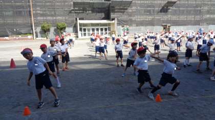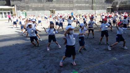 今朝から天気も良く、校庭ではダンス音楽と子どもたちの元気な声が響いていました。低学年の子は、初めて入場から退場まで通して練習しました。