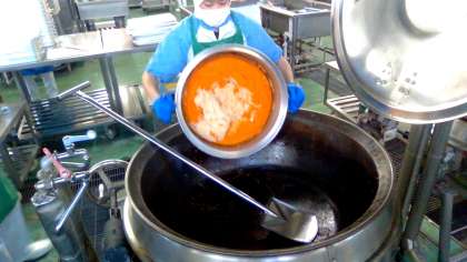にんじんをごはんと一緒に炊き上げたことで、きれいなにんじん色のごはんができあがりました。