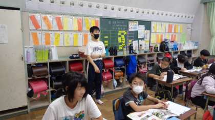 最初は緊張気味の中学生たちでしたが、子どもたちと触れ合う中で、楽しそうに仕事に取り組んでくれていました。