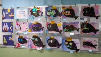わかば学級の教室前に図工の作品が掲示されていました。ほのぼのとさせられる作品ですね。