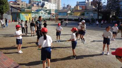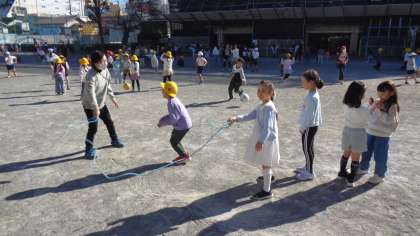 先生も一緒になわとびをしていました。