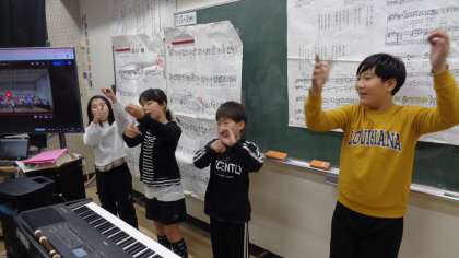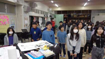 アートフェスティバルに向けて、6年生が音楽の合同練習をしていました。