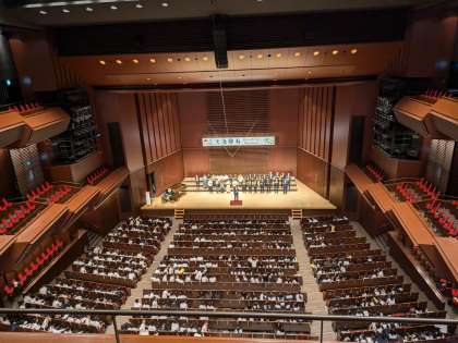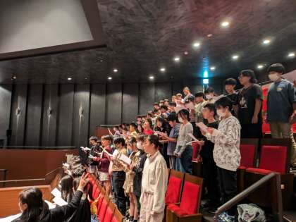 当日は小学校の音楽の先生も、審査員として参加しました。写真は全校合唱の場面です。