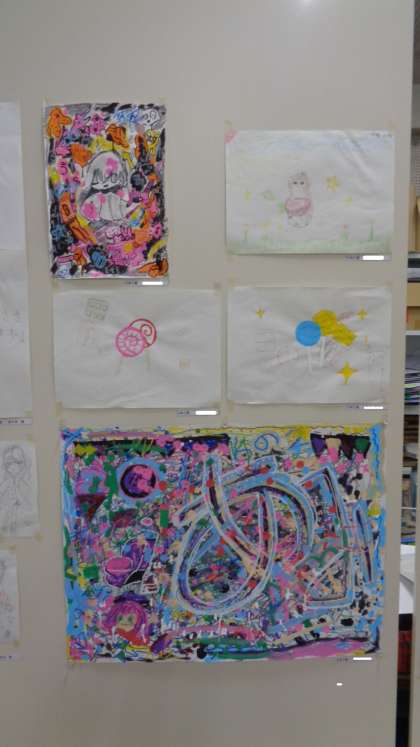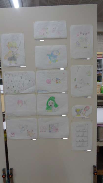 学年のほかに、まんがスケッチクラブ、手芸クラブの作品も展示しました。(パソコンクラブはプロジェクター投影)