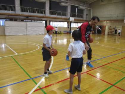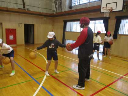 八王子に本拠地を置く、プロバスケットボールチーム「八王子ビートレインズ」の選手が、5年生にバスケットボールの出前授業をしてくれました。