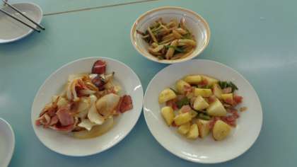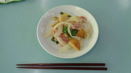 手早く、さっと炒めます。さすが6年生、手際が良く上手です。お皿に盛られました。