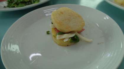 「本日のスペシャリテ」です。シェフが一皿一皿、フレンチのような盛り付けをしていました。将来の三ツ星レストランシェフの誕生です!!