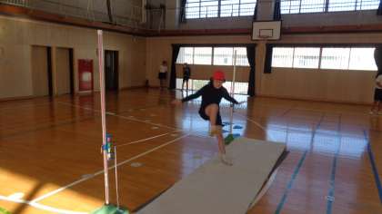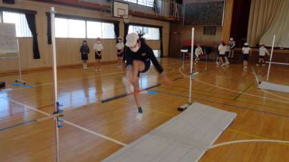 5年2組の子たちが「走り高跳び」に挑戦していました。