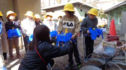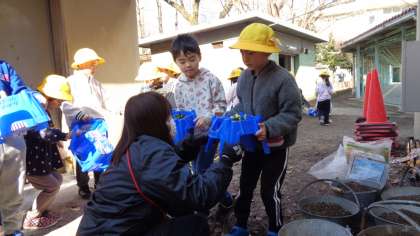 卒業式と入学式で飾るビオラを植えてくれていました。