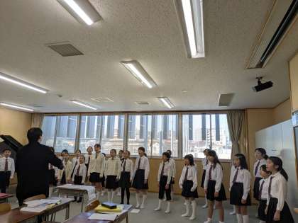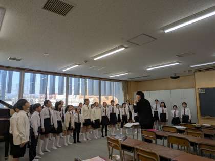 中学校でも本番前のリハーサルと練習をしました。この後会場である体育館に向かいました。