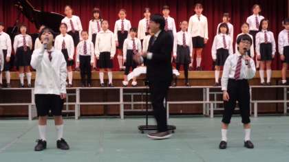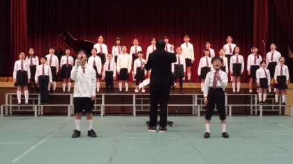 2曲目は「おじいちゃんのじまん」です。4年生の男子2人がソロパートを綺麗に歌ってくれました。