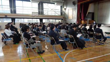 最後に、3校が体育館に集まり、各分科会の内容を報告しました。来年度も、3校でしっかりと小中一貫教育に取り組んでいきます。